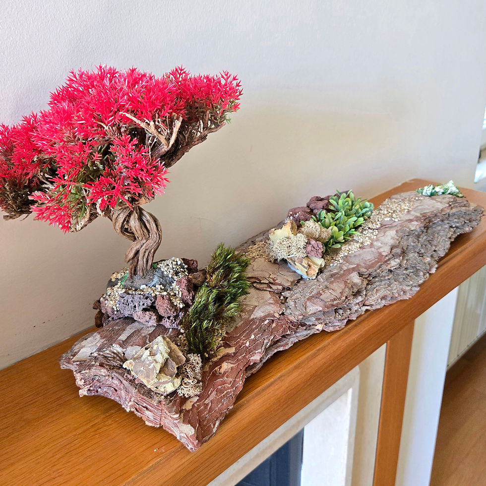 Doğal Dinginlik – Gerçek Ağaç Kabuğu Üzerinde El Yapımı Mini Peyzaj Dekoru